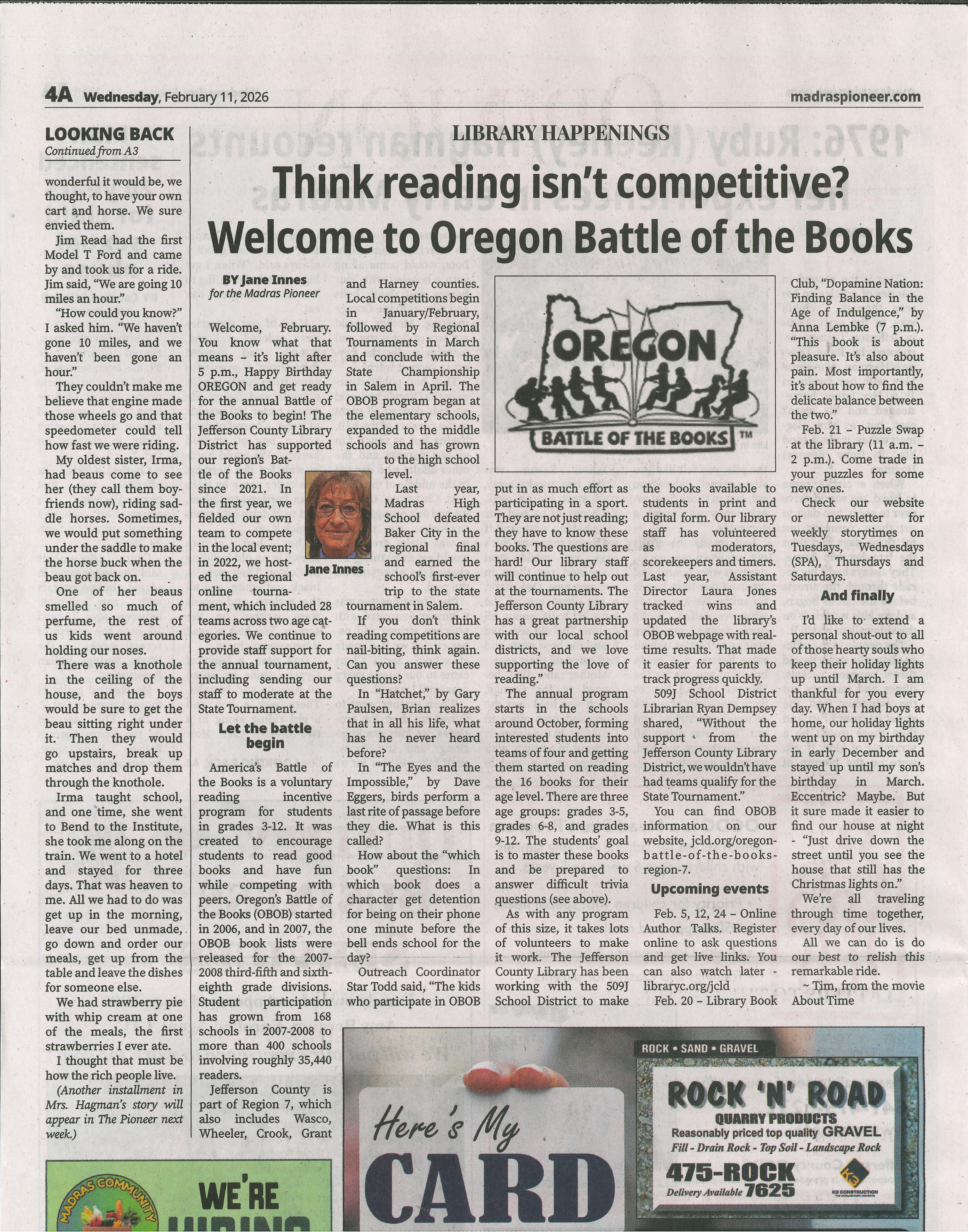 Madras Pioneer | February 11, 2026 - Welcome to Oregon Battle of the Books